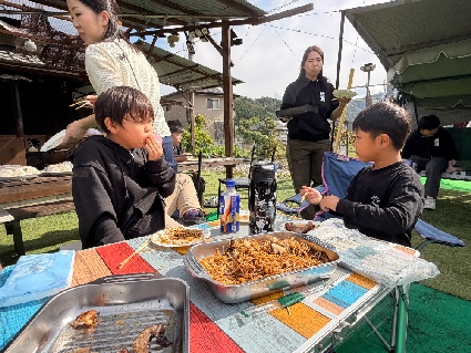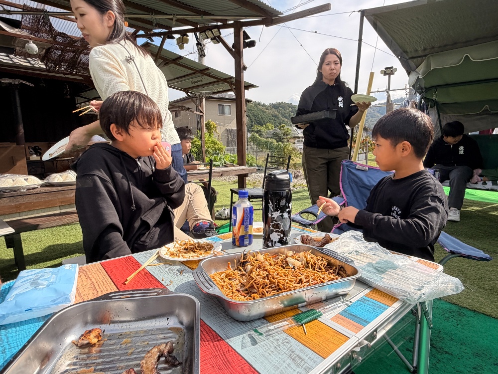 良いお天気に恵まれ、お肉や焼きそばをいただき、芋ほり体験や野菜の収穫、屋外ゲームで遊んだりと楽しい時間を過ごせました。